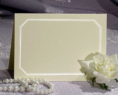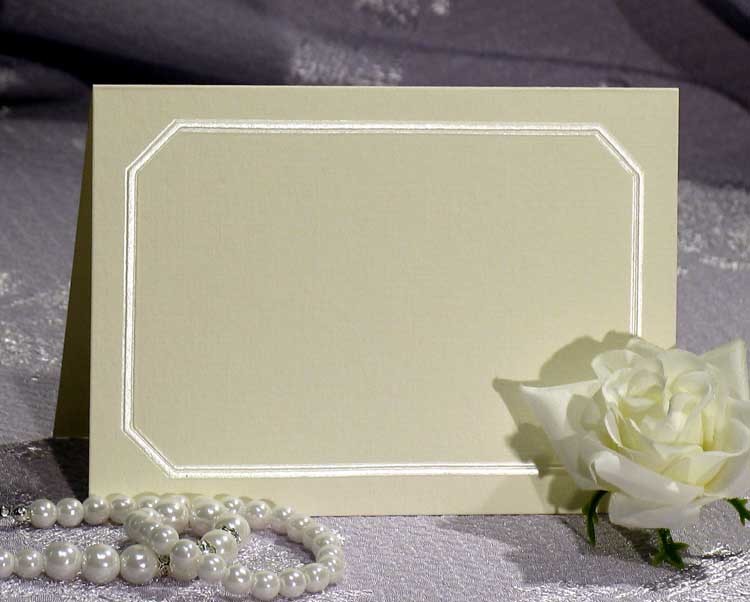 A pearl foil stamp and emboss border with eight sides as octagon on invitation weight paper.